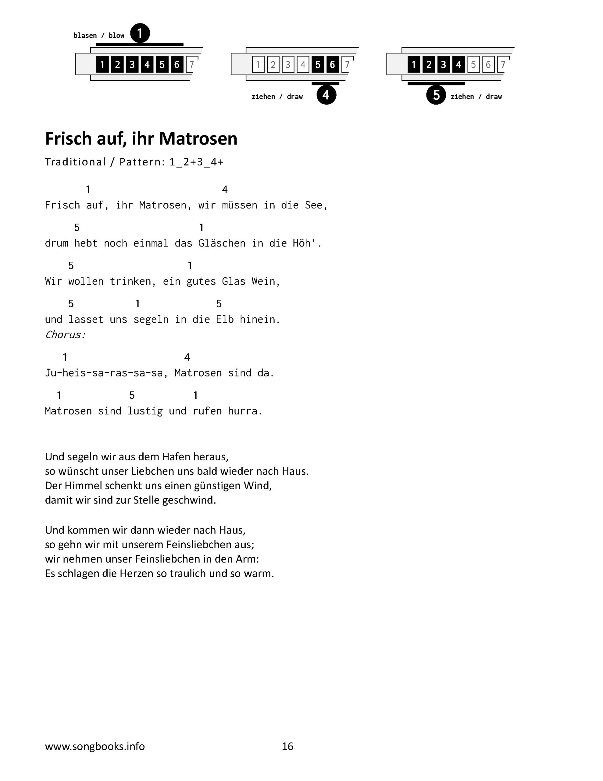 Liederbuch (in deutsch und english) mit 24 Seemannslieder, aufbereitet mit nur drei Akkorden für die Begleitung mit der Mundharmonika / Bluesharp.