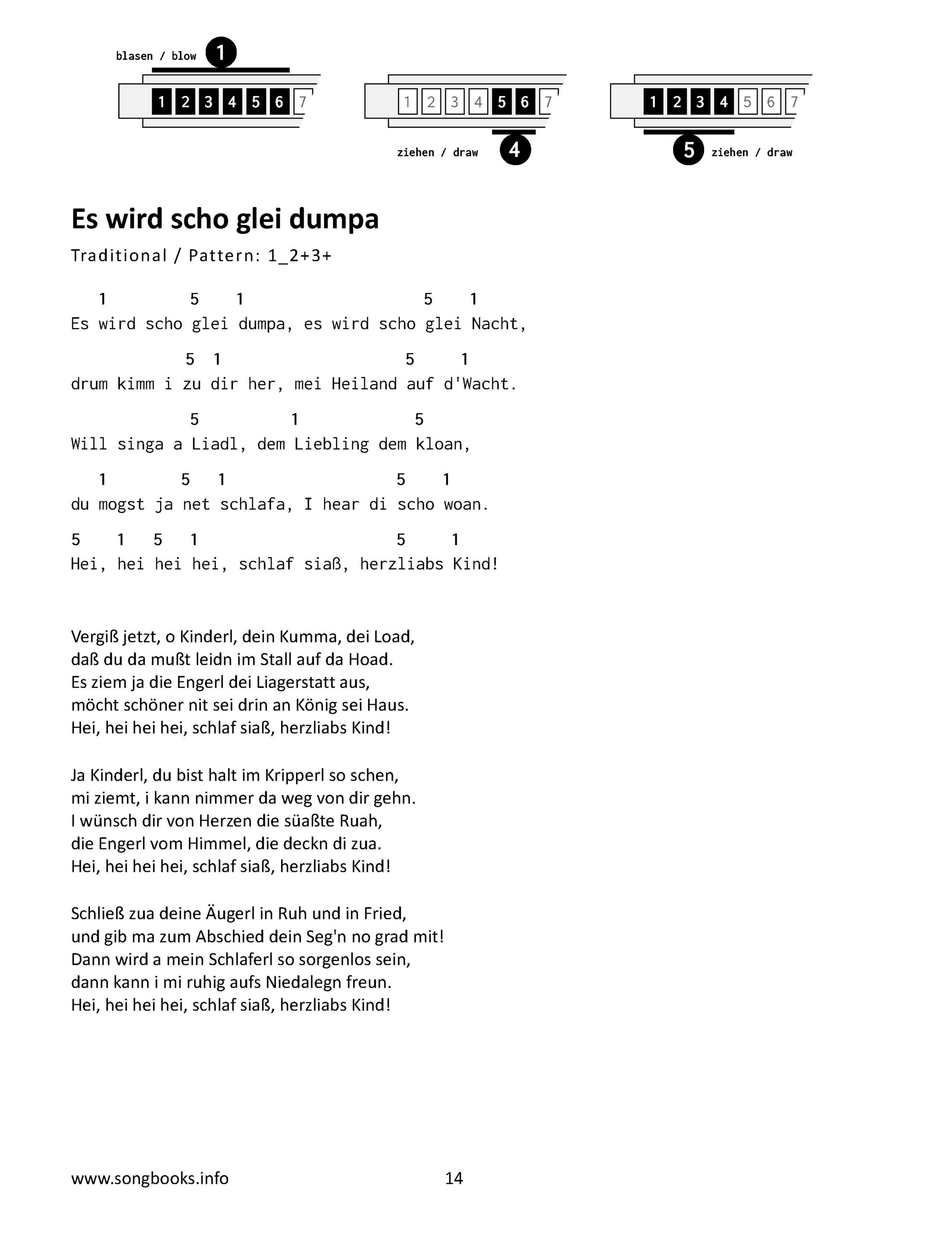 Auch sind die Texte aller Strophen zu jedem Song notiert.