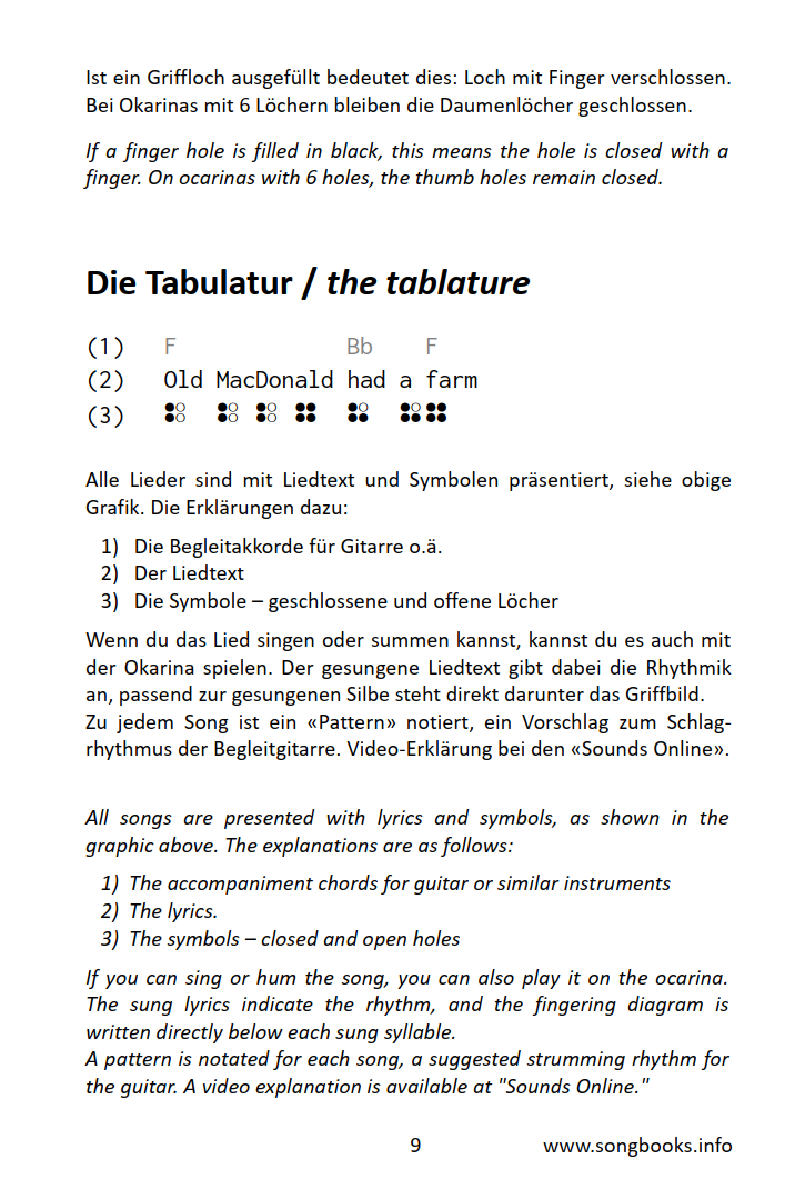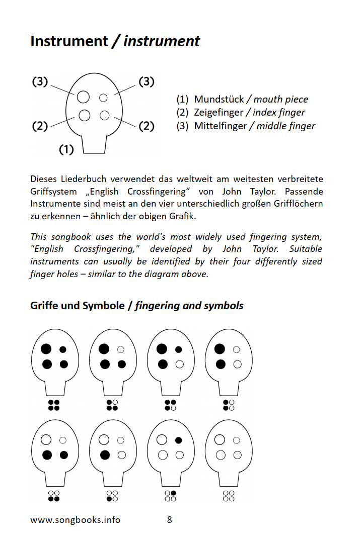 Liederbuch (in deutsch und english) mit 100 Liedern aus mehreren Genres mit einem Tonumfang von nur 8 Tönen – „Only 8“ – aufbereitet für die 4-Loch Okarina.